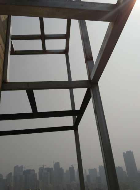 这是位于武昌区静安路静安上城户主家的钢结构阳光房施工现场,这家户主的阳光房是两层钢结构建起来的。这是焊工师傅现场施工图。 材料使用的是4.0mm镀锌管钢材天津厂家出售。